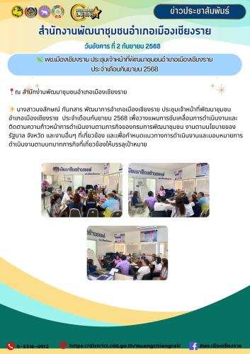 🍃 พช.เมืองเชียงราย ประชุมเจ้าหน้าที่พัฒนาชุมชนอำเภอเมืองเชียงราย ประจำเดือนกันยายน 2568
