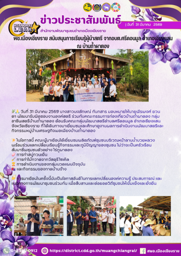 🌿🙏 วันที่ 31 มีนาคม 2569 นางสาวนงลักษณ์ กันทสาร มอบหมายให้นายพีรพงศ์ ยวนตา พัฒนารับผิดชอบงานองค์สตรี ร่วมกับคณะกรรมการท่องเที่ยวบ้านถ้ำผาตอง กลุ่มอาชีพสตรีบ้านถ้ำผาตอง ต้อนรับคณะกลุ่มพัฒนาสตรีตำบลศรีดอนมูล อำเภอเชียงแสน จังหวัดเชียงราย ที่ได้เดินทางมาเยี่ยมชมและศึกษาดูงานผลการดำเนินงานพัฒนาสตรีและกิจกรรมหมู่บ้านเศรษฐกิจพอเพียงบ้านถ้ำผาตอง